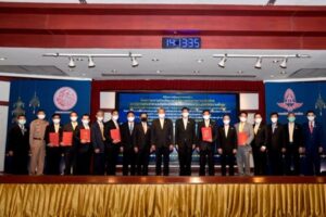 泰国交通部常务次长察亚探.蓬颂,2020年11月26日在交通部俱乐部大楼会议厅,主持中泰高铁 5 个合约段的廉政协议与承建施工合同签字仪式。这 5 个合约是泰国与中国政府间重要合作项目第一阶段“曼谷-呵叻”当中的 5 个分块合同,该项高速铁路项目一旦建成,将成为实现泰国铁路系统更新换代,以及中泰铁路及基础设施系统互联互通的重要项目。