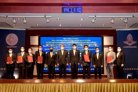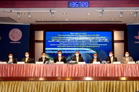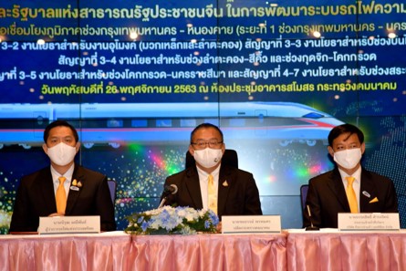 泰国交通部常务次长察亚探.蓬颂,2020年11月26日在交通部俱乐部大楼会议厅,主持中泰高铁 5 个合约段的廉政协议与承建施工合同签字仪式。这 5 个合约是泰国与中国政府间重要合作项目第一阶段“曼谷-呵叻”当中的 5 个分块合同,该项高速铁路项目一旦建成,将成为实现泰国铁路系统更新换代,以及中泰铁路及基础设施系统互联互通的重要项目。